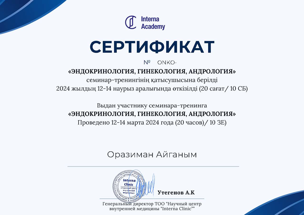 НАО «Медицинский университет Семей», Специальность: Эндокринология взрослая, детская.