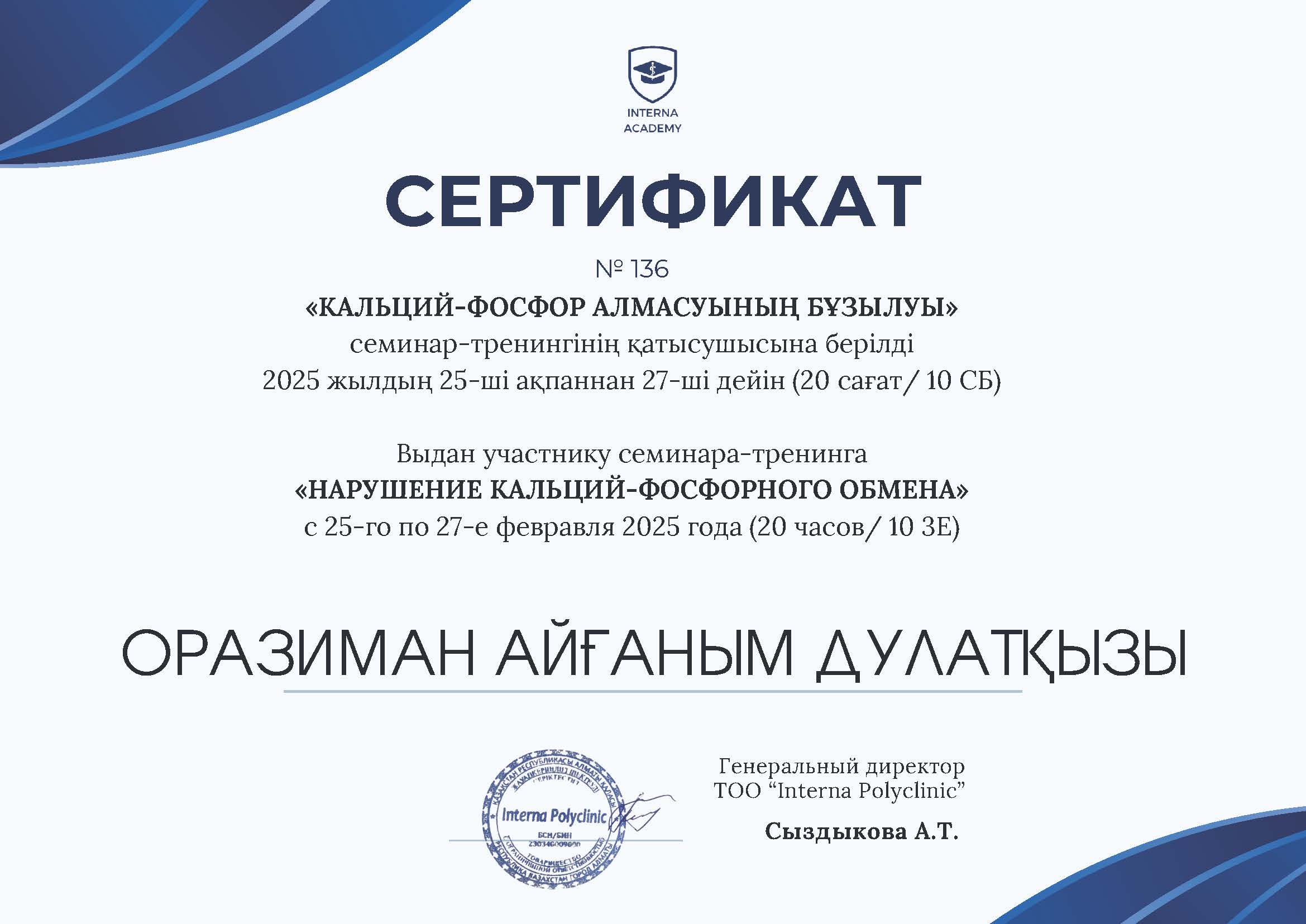 НАО «Медицинский университет Семей», Специальность: Врач общей практики.