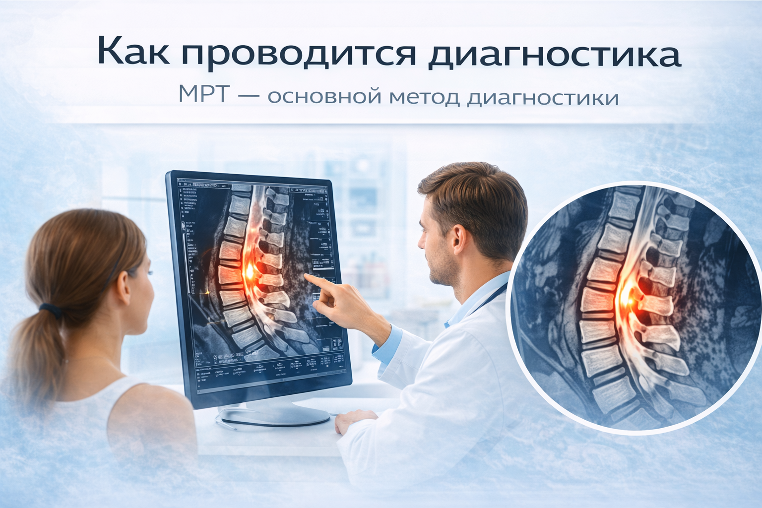 МРТ — ключевой метод, который показывает направление выпячивания диска и степень вовлечения нервных структур.